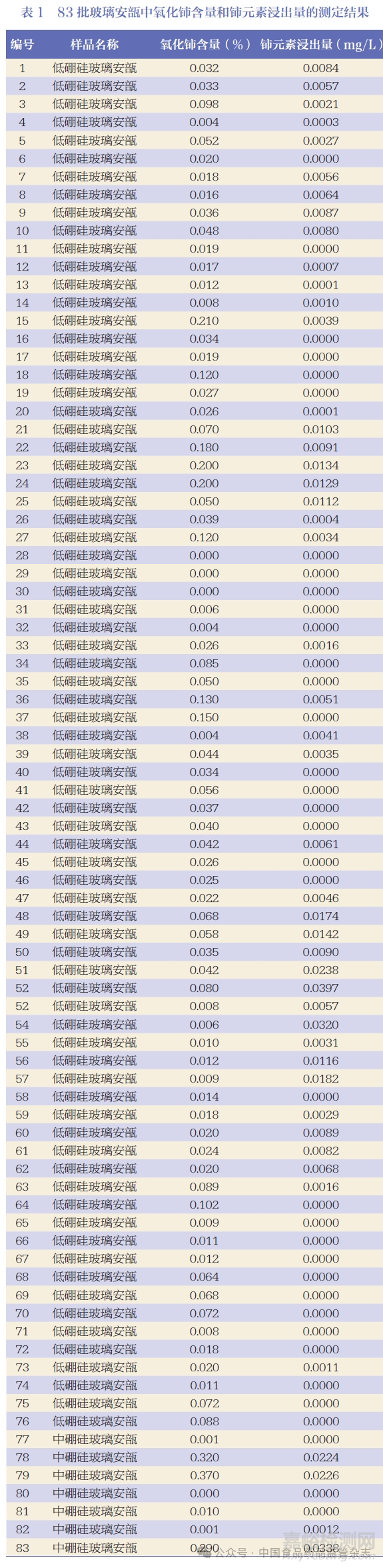 玻璃安瓿;氧化鈰含量;鈰元素浸出量;電感耦合等離子體原子發(fā)射光譜法