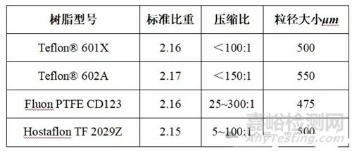 表3 用于生產ePTFE的商業(yè)聚四氟乙烯樹脂示例