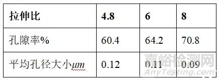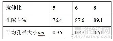 表4 機器方向上的拉伸比對孔隙率和孔徑的影響