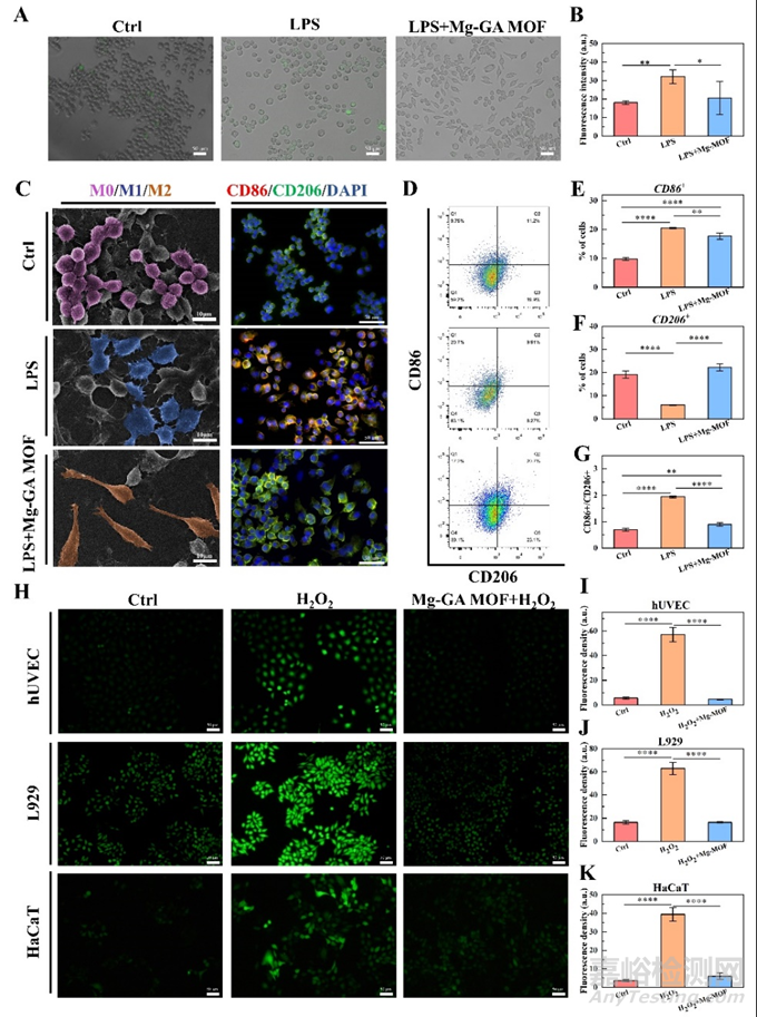 圖4. Mg-GA MOF的體外抗炎和抗氧化能力