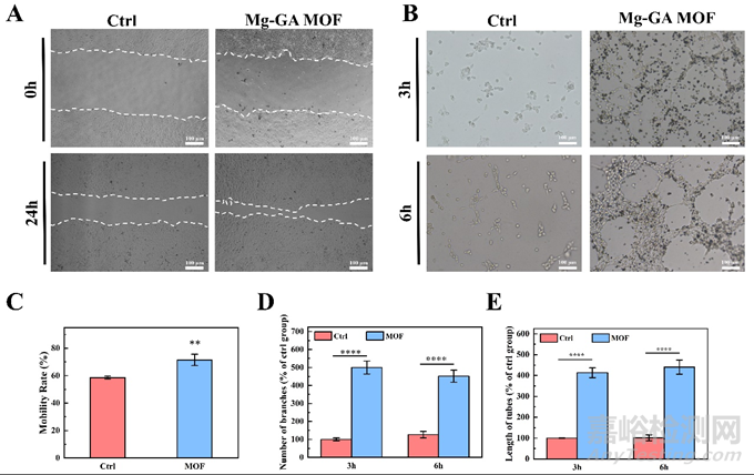 四、Mg-GA MOF促進(jìn)體外內(nèi)皮細(xì)胞遷移和小管形成