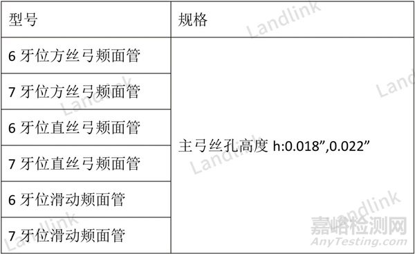 以下面正畸頰面管為例,型號的定義很復雜,不附上一張最終的規(guī)格型號列表審評老師是很難直觀感受正確的規(guī)格型號表達格式的。