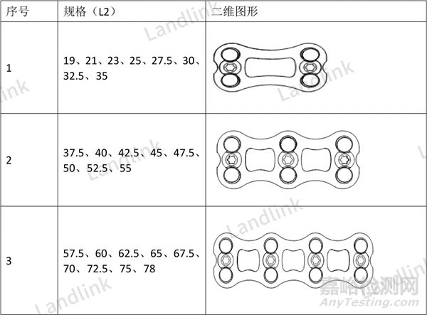 在說明型號間區(qū)別時,必要時應當以輔以圖片(二維圖、三維圖)直觀明了地展示不同型號間的區(qū)別,需要注意的是相同型號不同規(guī)格間可能也存在分組設計的特征,以下面頸椎前路釘板為例,同一個型號不同規(guī)格的節(jié)段數(shù)量有不同的設計,通常情況下,節(jié)段數(shù)量會被認為是比較重要的設計特征,是需要在注冊資料中披露出來的。