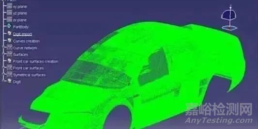 在油泥模型完成后,使用三維測(cè)量?jī)x器對(duì)油泥模型進(jìn)行測(cè)量,測(cè)量生成的數(shù)據(jù)稱為點(diǎn)云,工程師根據(jù)點(diǎn)云使用曲線軟件比如Catia、UG imageware來構(gòu)建汽車產(chǎn)品的外形。