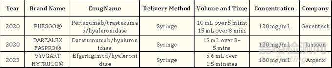 盡管目前有許多可用新興的方法,但是就節(jié)省醫(yī)療保健專業(yè)人員時(shí)間和增加患者依從性而言,制劑技術(shù)(如透明質(zhì)酸酶粘度較大造成的給藥痛苦)和給藥設(shè)備(操作復(fù)雜且給藥時(shí)間相對(duì)較長(zhǎng))仍有待提高。