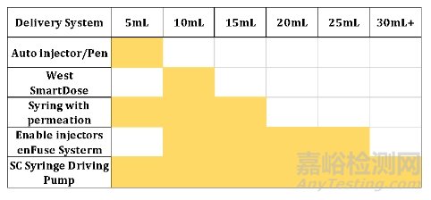 注射部位藥物濃度高可能導(dǎo)致注射部位不良反應(yīng),降低生物利用度或增加免疫原性,因此,皮下注射通常限制在2毫升以下。傳統(tǒng)SC裝置的使用要求制劑高度濃縮或多次注射或以較短的給藥間隔給藥。注射量大于2.5毫升被認(rèn)為與注射疼痛、滲漏和組織變形有關(guān)。