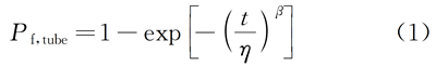 式中:Pf,tube為管束的失效概率;t為服役時間;β為無單位的威布爾形狀參數(shù);η為按年計算的威布爾特征壽命。