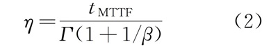 (3) 使用單位提供管束的平均無故障工作時間tMTTF,在β=3的情況下,利用下式計算η(其中Γ為伽馬函數(shù)):