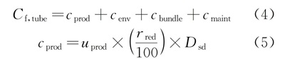 熱交換器管束的失效后果只考慮經(jīng)濟后果,經(jīng)濟后果包括:停工經(jīng)濟損失cprod,環(huán)境費用cenv,管束更換費用cbundle,管束維護費用cmaint,失效后果Cf,tube按下式計算: