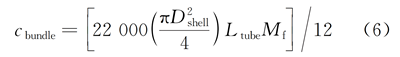 式中:uprod為系統(tǒng)每天的生產(chǎn)利潤;rred為管束停用導(dǎo)致的生產(chǎn)率下降值;Dsd為停工時間;以上三個數(shù)值均由使用單位提供。Dshell為換熱器殼體內(nèi)直徑;Ltube為管束長度;Mf為管束材料成本因子,有41種材料可供選擇,包含常見的換熱管束材質(zhì)。