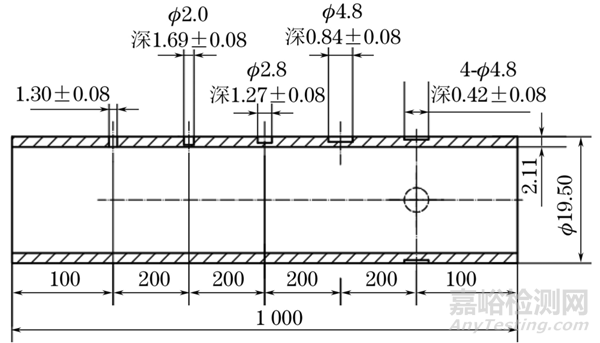 由于換熱管束材質(zhì)為合金20,屬于非鐵磁性材料,因此需要采用常規(guī)渦流檢測技術(shù),檢測設(shè)備為國產(chǎn)愛德森ECC-39型渦流檢測儀,按照標準NB/T 47013.6-2015的要求加工II型對比試樣,試樣尺寸如圖1所示。