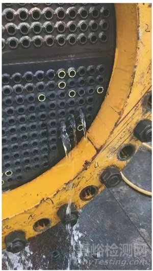 圖3 腐蝕穿孔管束水壓試驗泄漏