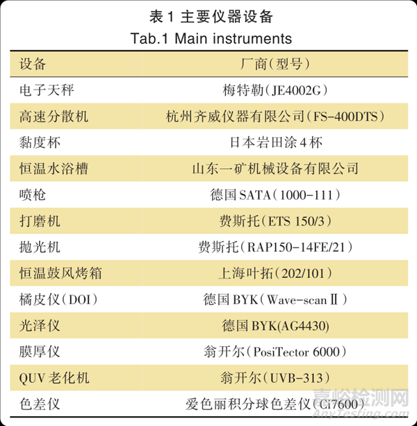試驗用主要儀器設(shè)備見表1。