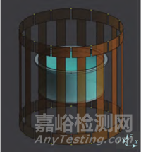 使 用 時 域 有 限 差 分( finite-difference time-domain,F(xiàn)DTD)算法進行射頻線圈內電磁場的仿真。仿真中采用與實際射頻線圈同樣結構和尺寸的16腿的高通鳥籠線圈(見圖5)。