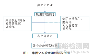 為了更好地優(yōu)化資源配置,提高產(chǎn)品檢測效率,改進產(chǎn)品品質(zhì),集團化企業(yè)在各分公司均建立了檢測實驗室,各分實驗室有相似的產(chǎn)品檢測項目,以及相同的質(zhì)量管理、資源配置要求,集團化企業(yè)統(tǒng)一進行內(nèi)部培訓,統(tǒng)一開展實驗室比對等質(zhì)量控制措施。因此,本節(jié)根據(jù)集團化實驗室的特點,從組織結構、質(zhì)量管理體系、資源配置、過程控制、質(zhì)量控制、信息化建設等方面探討了集團化實驗室的質(zhì)量管理工作。