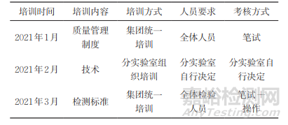 表1 集團實驗室培訓方案