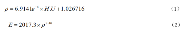 式中,H.U為亨氏單位,為CT圖像中的灰度值;ρ為骨骼密度;E為彈性模量。
