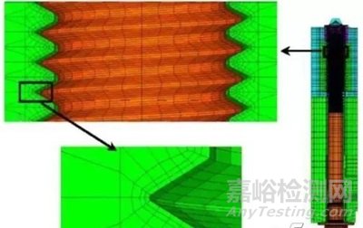 由于螺紋處的應(yīng)力應(yīng)變不是關(guān)心的重點(diǎn),因此,為簡(jiǎn)化建模,避免收斂困難,在螺釘和螺孔內(nèi)表面之間建立綁定約束(tie)。這樣得到的模型會(huì)比實(shí)際結(jié)構(gòu)剛硬。
