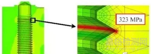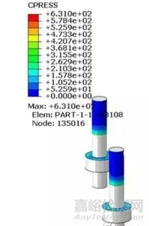 圖4某結(jié)構(gòu)直徑10MM的帶螺紋的連接螺栓接觸壓力分布云圖