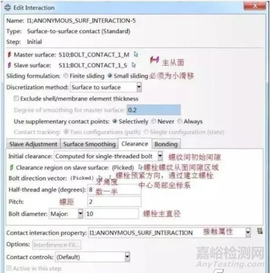 含義:與主面距離小于此限度的從面節(jié)點(diǎn)都會(huì)受到綁定約束。對(duì)于在位置誤差限度內(nèi)的從面節(jié)點(diǎn),ABAQUS將調(diào)整其初始坐標(biāo),使其與主面的距離為0。注意不要將值設(shè)太大,以免由于調(diào)整從面節(jié)點(diǎn)位置,而造成較差的單元形狀。