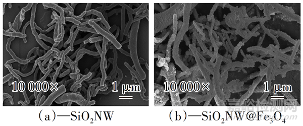圖1 SiO2NW和SiO2NW@Fe3O4的SEM圖