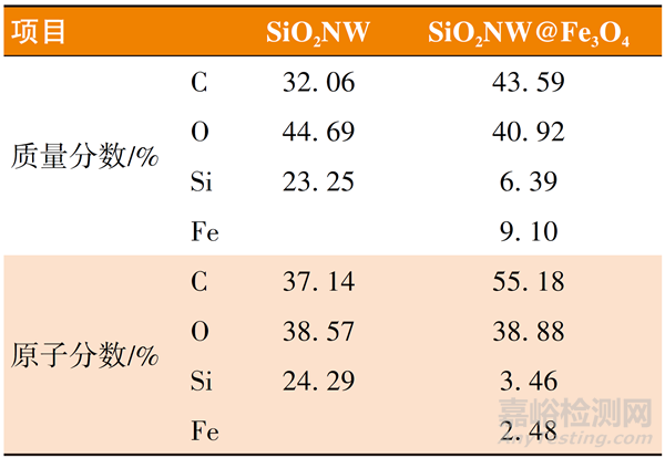 表1 SiO2NW 及SiO2NW@Fe3O4的元素組成