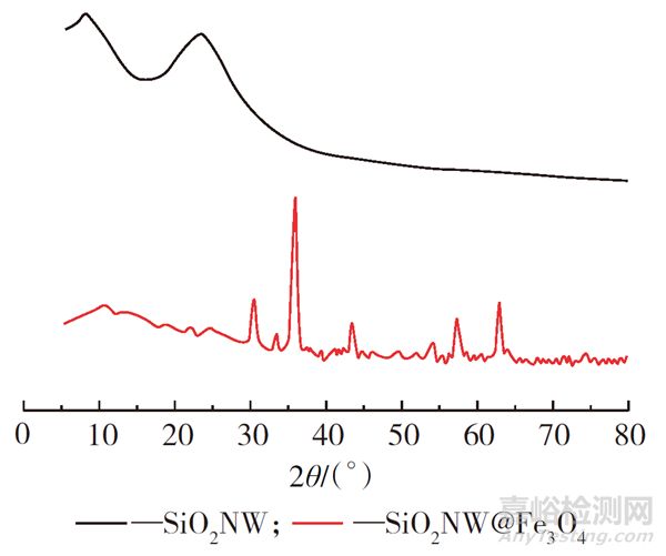 SiO2NW和SiO2NW@Fe3O4的XRD圖如圖3所示。