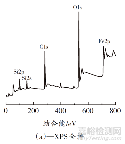 利用X射線光電子能譜分析SiO2NW@Fe3O4表面元素組成及化學(xué)鍵信息,結(jié)果如圖4所示。