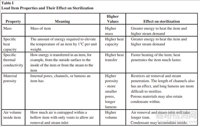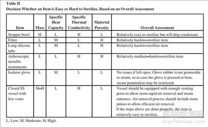 在蒸汽滅菌中,與裝載量相關(guān)的其他物理屬性也起著重要作用。表I列出了物品的裝載屬性及其對(duì)滅菌的影響。結(jié)合這些屬性可以簡(jiǎn)化判斷哪些物品容易或更具挑戰(zhàn)性進(jìn)行滅菌的決策過(guò)程。表II列出了一些常見物品的例子。需要注意的是,該表僅比較了物品,并沒(méi)有明確指出某個(gè)物品對(duì)于過(guò)度殺菌周期是否具有挑戰(zhàn)性