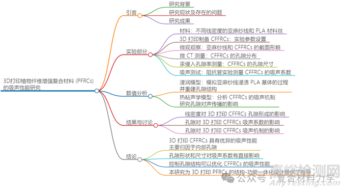 該研究量化分析了孔隙對 3D 打印亞麻纖維增強 PLA 復合材料 (CFFRCs) 吸聲性能的影響,并揭示了孔隙對 CFFRCs 吸聲機制的影響。研究結(jié)果表明,CFFRCs 具有優(yōu)異的吸聲性能,主要歸因于內(nèi)部孔隙??紫缎螤詈统叽鐚ξ曄禂?shù)有直接影響??刂瓶紫督Y(jié)構(gòu)可以優(yōu)化 CFFRCs 的吸聲性能。該研究為 3D 打印 PFRCs 的結(jié)構(gòu)-功能一體化設計提供了指導,具有重要的理論意義和應用價值。