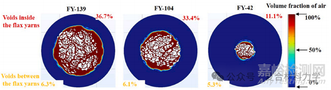 圖5 三維打印CFRCs浸漬過程后三種浸漬亞麻紗橫截面空隙分布的數(shù)值結(jié)果。