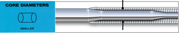 b.核芯直徑較粗:支撐力強,適合輸送器械及拉直迂曲血管,扭矩傳遞更好。