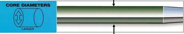 a.核芯直徑較細:支撐力較弱,柔順性好,跟蹤性好。