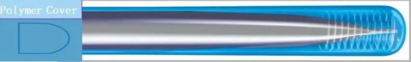 b.聚合物護套:聚合物護套使導絲表面更光滑,減小導絲的通過阻力,提高跟蹤性。