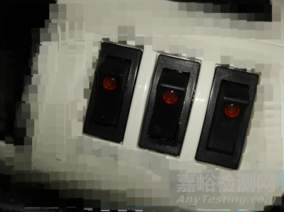 某款暖風(fēng)機(jī)進(jìn)行IPX1試驗(yàn)后,對(duì)開關(guān)表面加強(qiáng)絕緣部位進(jìn)行電氣強(qiáng)度3000V試驗(yàn)時(shí)出現(xiàn)擊穿現(xiàn)象,經(jīng)檢查發(fā)現(xiàn)有水從開關(guān)與殼體之間的縫隙進(jìn)入到內(nèi)部,并且有水從出風(fēng)口進(jìn)入到PTC發(fā)熱元件,導(dǎo)致發(fā)熱元件的不同極性之間處于短路狀態(tài)且無短路保護(hù)裝置,功能性絕緣的爬電距離不符合家電產(chǎn)品標(biāo)準(zhǔn)考核要求,不符合GB 4706.1-2005標(biāo)準(zhǔn)第15.1條款要求,見圖1、圖2。
