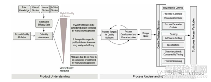 工藝設(shè)計階段主要活動包括不限于以目標產(chǎn)品概況(Target Product Profile, TPP)出發(fā)建立目標產(chǎn)品質(zhì)量概況(Quality Target Product Profile,QTPP),經(jīng)風險評估識別出關(guān)鍵質(zhì)量屬性,并以此為基礎(chǔ)進行工藝開發(fā)。經(jīng)風險評估識別出潛在關(guān)鍵工藝參數(shù),基于潛在關(guān)鍵工藝參數(shù)開展工藝表征,建立初步工藝控制策略如放行標準、中間產(chǎn)品控制與限度、工藝參數(shù)設(shè)定點和范圍、日常監(jiān)控要求、中間產(chǎn)品和加工溶液的貯藏及工藝步驟的時間限度、設(shè)計空間(如適用)。工藝設(shè)計階段確定的工藝參數(shù)、性能指標及工藝控制策略將在下一階段中進行確認。