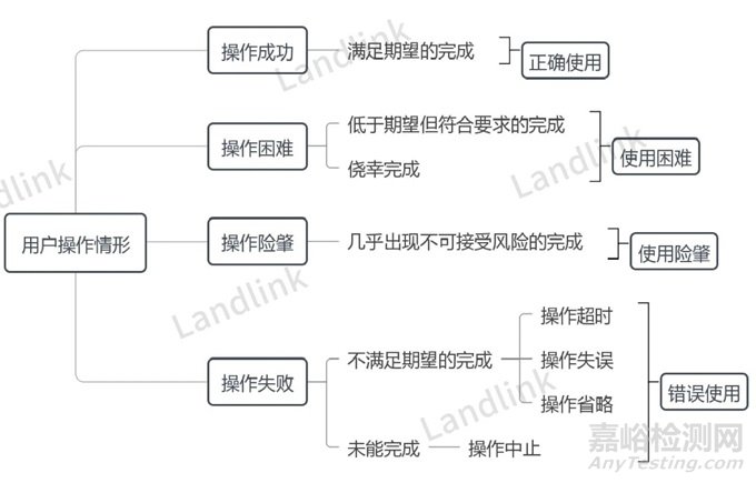 根據(jù)操作任務(wù)完成程度,將用戶實(shí)際使用情況分為操作成功、操作困難、操作險(xiǎn)肇、操作失敗。