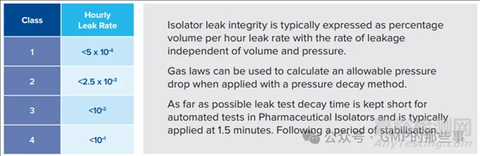 5%/小時的限制被認為是使用自動化壓力衰減方法進行完整性測試的最大值,而不會施加高壓以允許壓力衰減而不降至操作壓力以下。這種泄漏完整性水平適用于用于無菌工藝的復雜藥品隔離器。