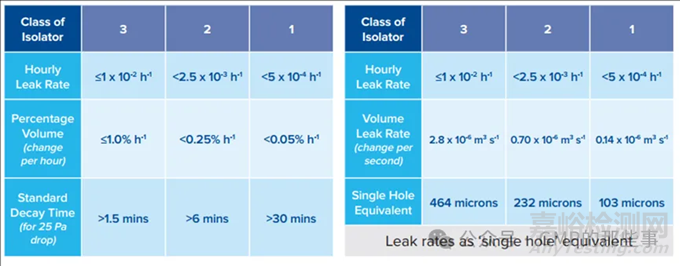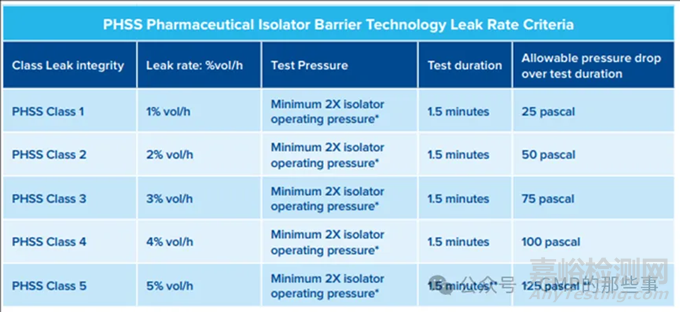 PHSS定義了五種隔離器屏障泄漏完整性等級,每個等級對應(yīng)于相對的每小時體積百分比泄漏率: