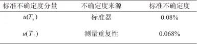 表2 不確定度分量匯總