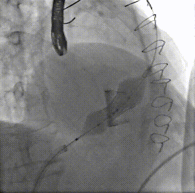借助外科瓣顯影瓣架及輸送系統(tǒng)的顯影點進行球擴瓣的精準定位,由于是右心系統(tǒng),本身壓力低于50mmHg,故無需進行快速起搏。緩慢充盈球囊至完全釋放瓣膜,最終借助球擴瓣釋放過程的同軸自調(diào)整,完成瓣膜的釋放。