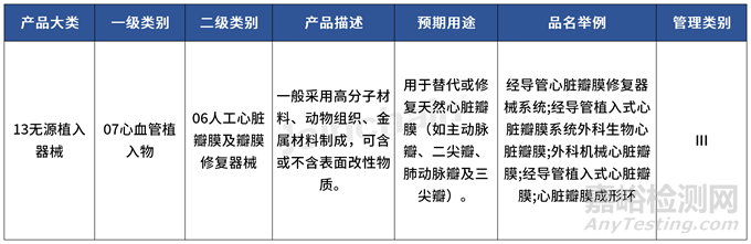 人工心臟瓣膜及瓣膜修復器械分類