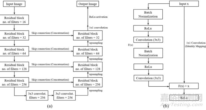 圖3(a) 剩余U-Net架構(gòu)和(b)擬議剩余U-Net中使用的剩余塊。