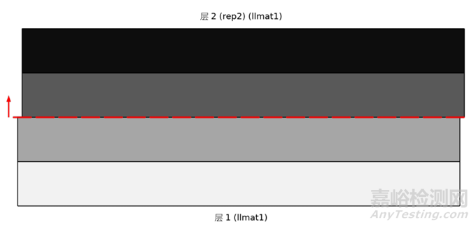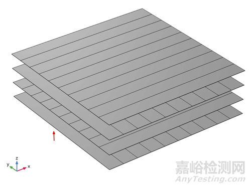 圖4 層合板的鋪層順序[90/0/90/0] °顯示了各層從下到上的纖維方向