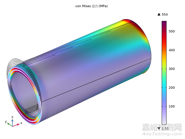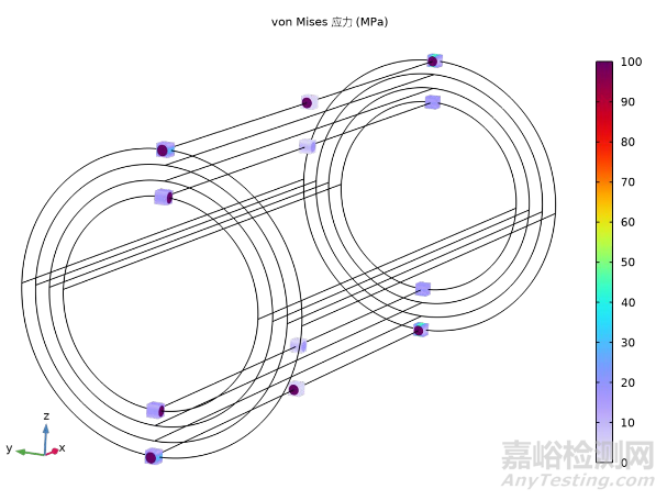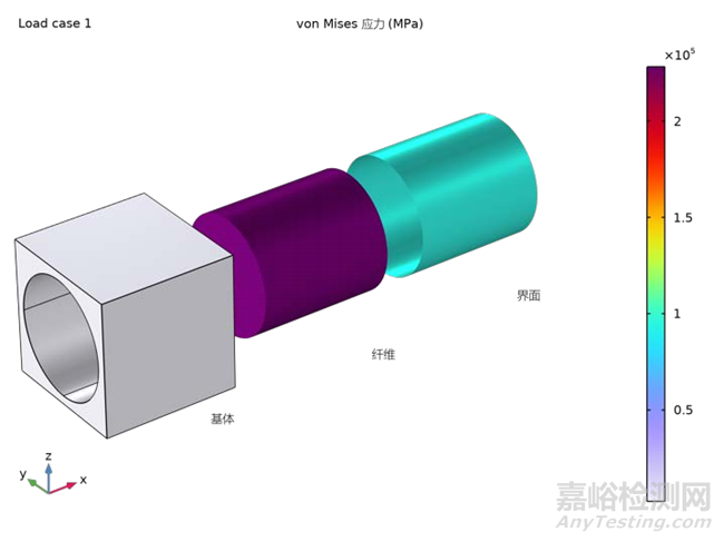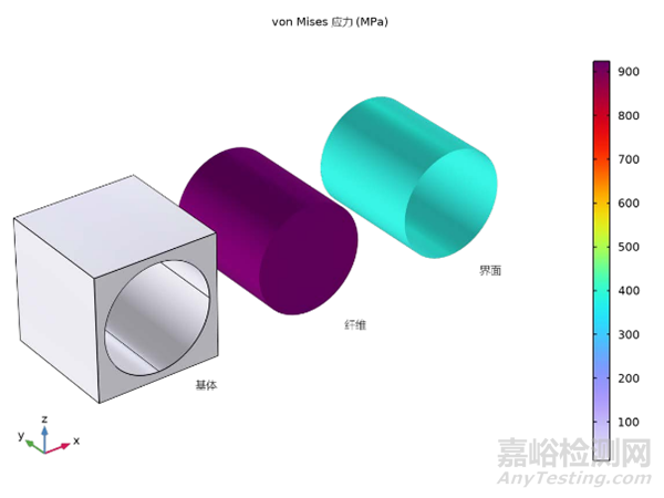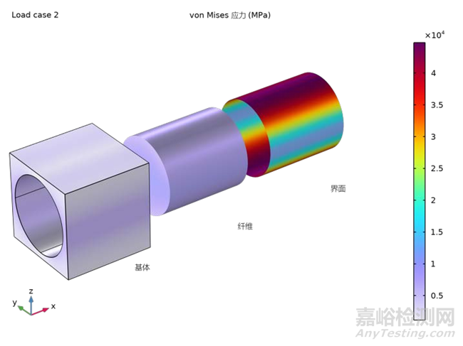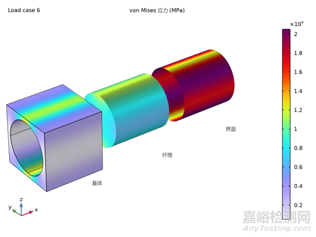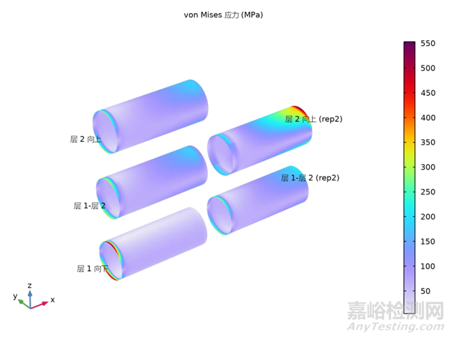 (b)多個材料位置的成分中的von Mises 應力;復合材料圓柱體
