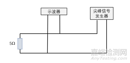 2、另一種方法是,在尖峰信號發(fā)生器的輸出端連接一個5W電阻,監(jiān)測這個電阻上的電壓。