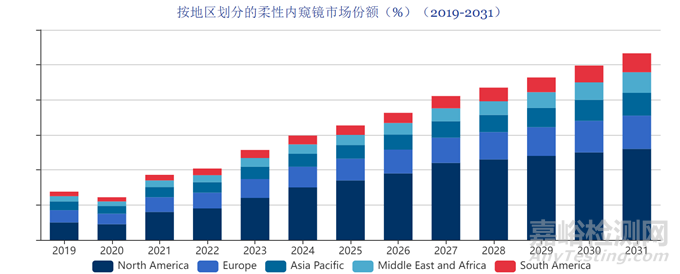 阻礙柔性內(nèi)窺鏡市場增長的主要挑戰(zhàn)來自替代程序的威脅。其他內(nèi)窺鏡(硬性內(nèi)窺鏡和膠囊內(nèi)窺鏡)以及先進的成像技術對柔性內(nèi)窺鏡的增長前景構成了重大威脅。在剛性內(nèi)窺鏡檢查中,會插入一根堅硬的望遠鏡狀管子來觀察感興趣的器官。與微喉鏡手術相結合的剛性內(nèi)窺鏡檢查將顯著提高對喉內(nèi)的訪問。膠囊內(nèi)窺鏡是胃腸道內(nèi)窺鏡領域的最新進展,它是柔性內(nèi)窺鏡的一種替代方案。它涉及吞服一個含有微型攝像頭的小型膠囊。這個攝像頭拍攝胃腸道(十二指腸、空腸、回腸)的圖片,并將這些圖片發(fā)送到記錄裝置。膠囊內(nèi)窺鏡有助于診斷胃腸道狀況,如不明原因的胃腸道出血、吸收不良、慢性腹痛、克羅恩病、潰瘍性腫瘤、息肉和小腸出血的原因。因此,這些替代方法的存在預計會阻礙全球柔性內(nèi)窺鏡市場的增長。
