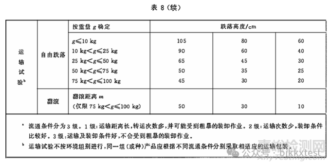 首先使受試品處于正常包裝運(yùn)輸狀態(tài),以受試品底面向地面做自由跌落(初速度為零),跌落三次,然后將前、后、左、右4個(gè)面分別朝下各跌落一次,共計(jì)跌落7次。跌落試驗(yàn)時(shí)應(yīng)使受試品的受試面平行于水泥地面,按自由落體下跌。