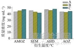 圖1 不同溫度下硝基呋喃化合物的衍生化的效率