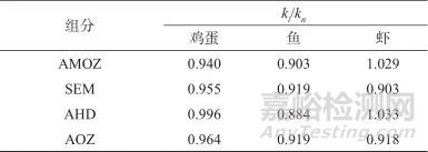 注:ki—含基質(zhì)的標準曲線的斜率; kn—不加基質(zhì)的標準曲線的斜率。